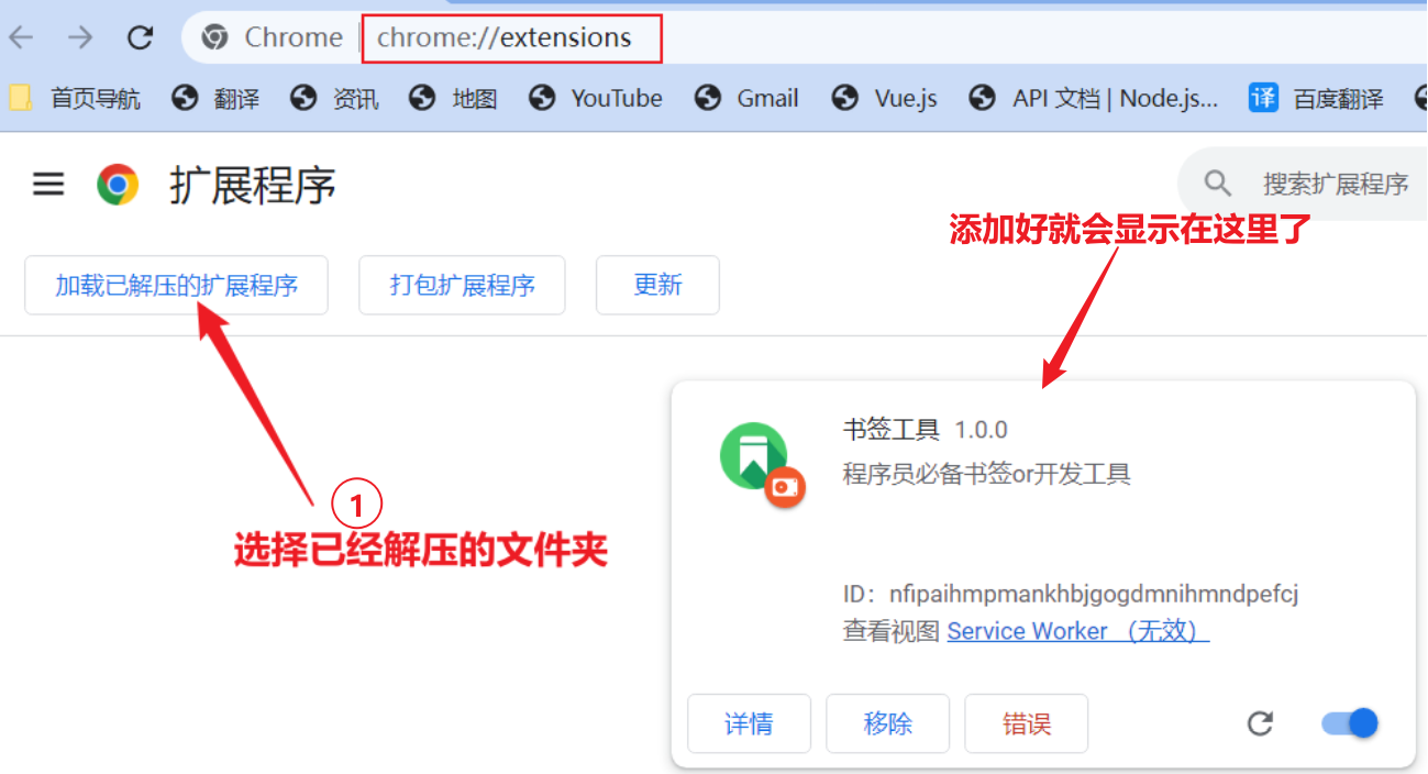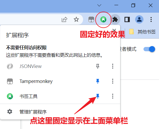 进入添加扩展页面,也可以直接在浏览器地址栏输入 chrome://extensions/选择刚才下载的压缩包的解压后目录(zip压缩包需要解压后才能使用)将插件固定在右上角菜单栏, 方便使用点击图标就可以正常使用了